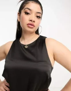 ASOS DESIGN Curve – Vestito Midi Con Scollo A Vogatore In Raso Nero
