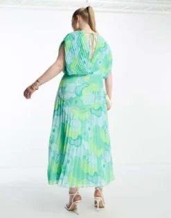 ASOS DESIGN Curve – Vestito Midi Arricciato In Vita Con Maniche A Campana A Fiori Misti
