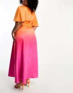 Flounce London Plus – Vestito Midi A Portafoglio In Raso Fucsia A Maniche Lunghe
