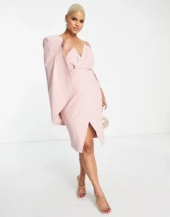 Lavish Alice Plus – Vestito Midi Asimmetrico Blu Con Spalle Scoperte