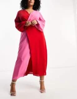 Pretty Lavish Curve – Vestito Lungo Rosa E Rosso A Contrasto Con Nodo Sul Davanti