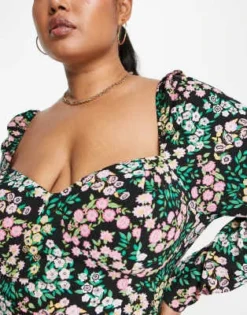 ASOS DESIGN Curve – Vestito Da Giorno Midi A Fiorellini Con Coppe