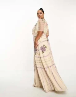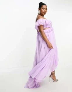 ASOS DESIGN Curve – Vestito Lungo Con Cut-out E Spalle Scoperte Lilla Con Volant E Fondo Asimmetrico