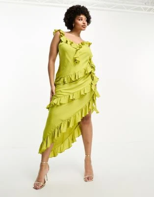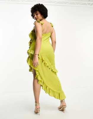 Flounce London Plus – Vestito Lungo Con Spalline Sottili E Volant In Raso Kaki
