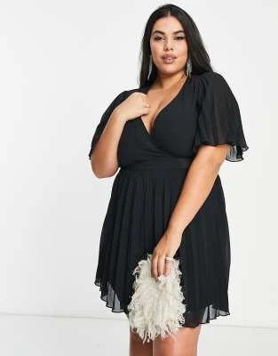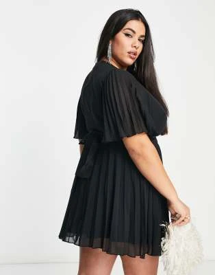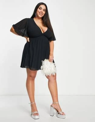 ASOS DESIGN Curve – Vestito Skater Midi Morbido Ricamato Con Godet E Maniche Svasate Nero