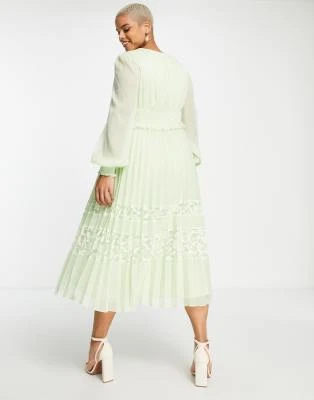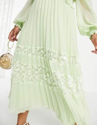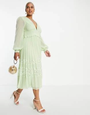 ASOS EDITION Curve – Vestito Lungo Allacciato Al Collo Con Arricciature In Raso Verde Salvia