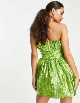 ASOS DESIGN Petite – Vestito Lungo A Pieghe E Balze Verde Salvia Con Scollo Profondo