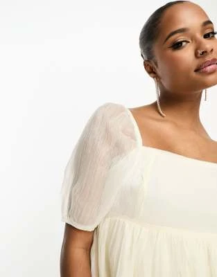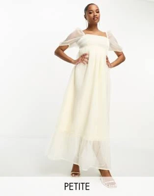 ASOS DESIGN Petite – Vestito Skater Corto In Organza Verde Ricamato Con Inserto In Pizzo