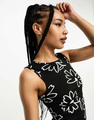 ASOS DESIGN – Vestito Milkmaid Midi Nero E Rosso A Fiori Con Dettagli Arricciati E Maniche Svasate