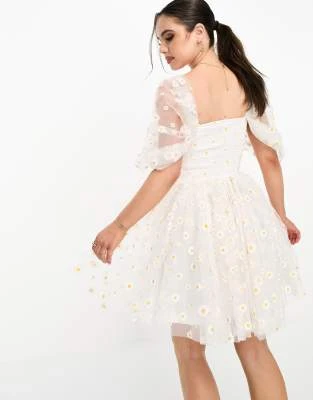ASOS DESIGN Petite – Vestito Corto Accollato Verde Bosco In Plumetis Con Finiture In Pizzo E Ricamo