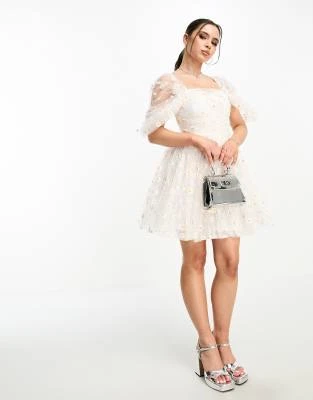 Forever New Petite – Vestito Corto Verde A Fiori Con Lacci Sulle Maniche