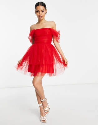 ASOS DESIGN Petite – Vestito Skater Corto In Organza Verde Ricamato Con Inserto In Pizzo