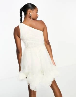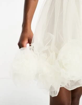 ASOS DESIGN Petite – Vestito Corto Accollato Verde Bosco In Plumetis Con Finiture In Pizzo E Ricamo