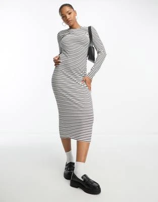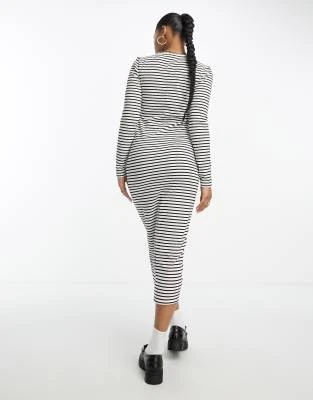 ASOS DESIGN – Vestito Milkmaid Midi Nero E Rosso A Fiori Con Dettagli Arricciati E Maniche Svasate