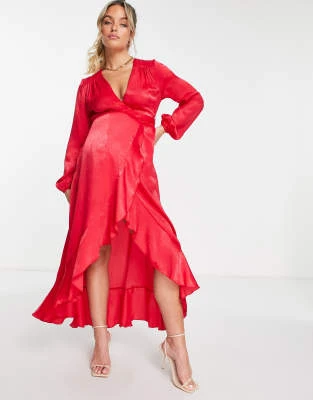 Flounce London Maternity – Vestito Lungo In Raso Lavanda A Portafoglio A Maniche Lunghe