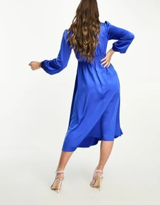 Mamalicious Maternity – Vestito Midi A Portafoglio In Raso Rosa Polvere