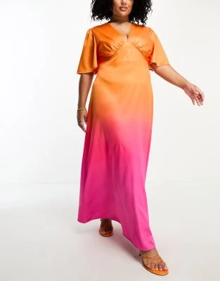 Topshop Curve – Vestito Da Cerimonia Midi In Raso A Fiori Blu