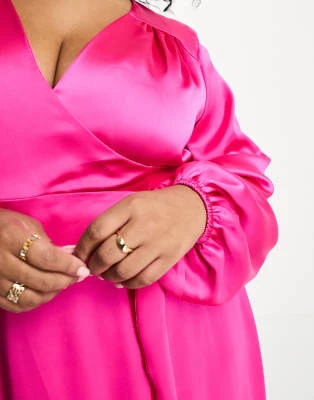 ASOS DESIGN Curve – Vestito Lungo Nero Con Taglio Sbieco E Maniche Ad Aletta