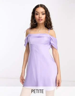 ASOS DESIGN Petite – Vestito Corto Accollato Verde Bosco In Plumetis Con Finiture In Pizzo E Ricamo