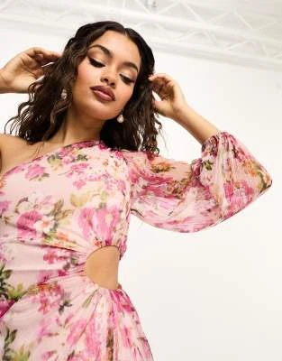 ASOS DESIGN – Vestito Milkmaid Midi Nero E Rosso A Fiori Con Dettagli Arricciati E Maniche Svasate