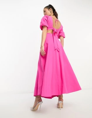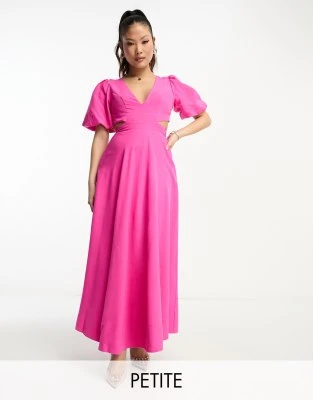 Nobody’s Child Petite – Esme – Vestito Midi Con Dettaglio Laccetti Sulle Maniche Verde A Fiorellini