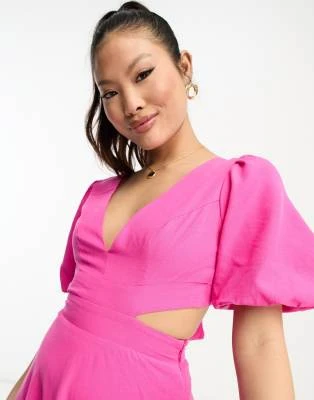 Forever New Petite – Vestito Corto Giallo A Fiori Con Maniche A Sbuffo