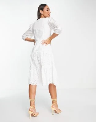 ASOS Maternity ASOS DESIGN Maternity – Vestito Midi Lilla Con Scollo Ad Anello E Maniche Con Volant