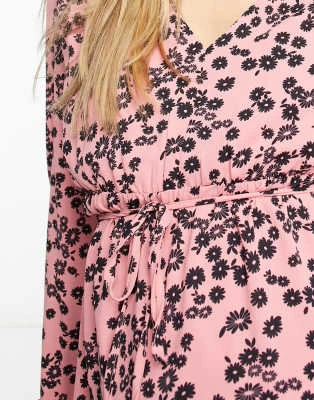 ASOS Maternity ASOS DESIGN Maternity – Vestito Midi Lilla Con Scollo Ad Anello E Maniche Con Volant