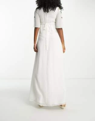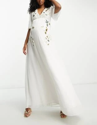 Hope & Ivy Maternity – Vestito Lungo A Portafoglio Verde A Fiori A Contrasto Con Maniche Con Volant