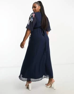 ASOS DESIGN Curve – Vestito Skater Midi Morbido Ricamato Con Godet E Maniche Svasate Nero