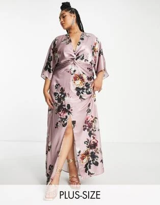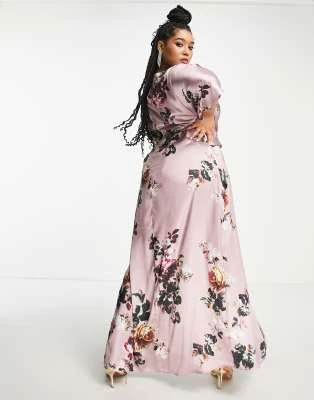Topshop Curve – Vestito Da Cerimonia Midi In Raso A Fiori Blu
