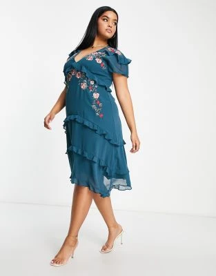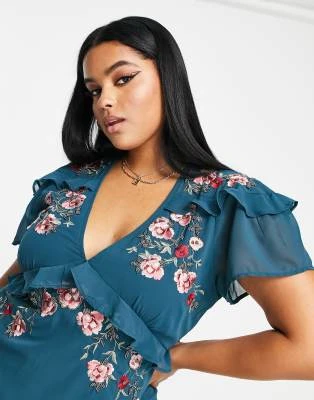 ASOS Edition Curve – Vestito Corto Con Maniche A Campana E Corpetto Ricamato Giallo