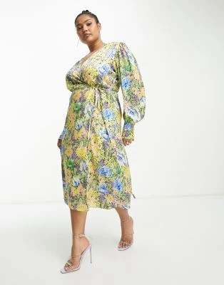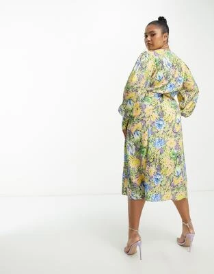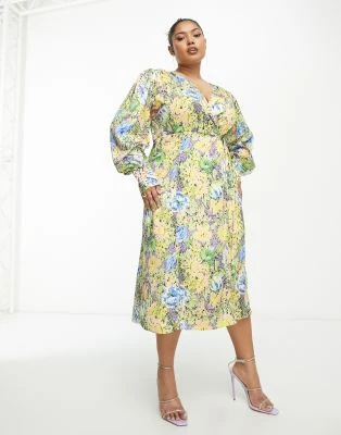 ASOS Edition Curve – Vestito Corto Con Maniche A Campana E Corpetto Ricamato Giallo