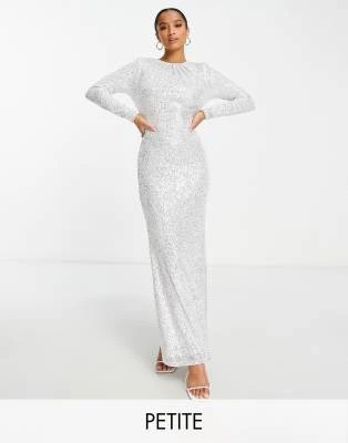 ASOS DESIGN Petite – Vestito Lungo In Rete Rosa Con Stampa A Macchie Con Spalline Sottili E Fascia