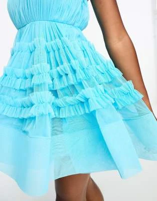 Esclusiva Lace & Beads Petite – Vestito Corto Monospalla In Tulle Avorio Con Volant Sul Fondo