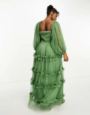 TFNC Plus – Vestito Lungo Da Damigella Rosa Cipria Con Maniche Con Volant