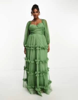 TFNC Plus – Vestito Lungo Da Damigella Rosso Con Maniche Con Volant