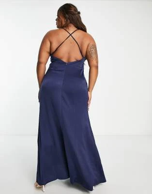 ASOS EDITION Curve – Vestito Lungo Con Scollo Squadrato In Raso Blu Crepuscolare