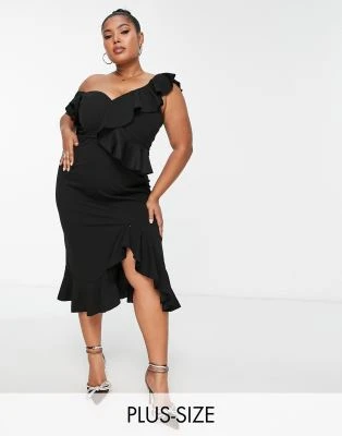 ASOS DESIGN Curve – Vestito Lungo Nero Con Taglio Sbieco E Maniche Ad Aletta