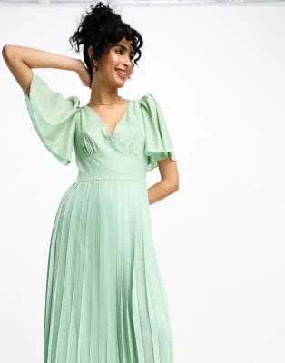 ASOS DESIGN – Vestito Da Giorno Midi Arricciato Con Maniche Ad Aletta Bianco Con Stampa Con Ciliegie