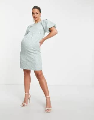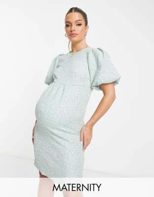 Hope & Ivy Maternity – Vestito Lungo A Portafoglio Verde A Fiori A Contrasto Con Maniche Con Volant