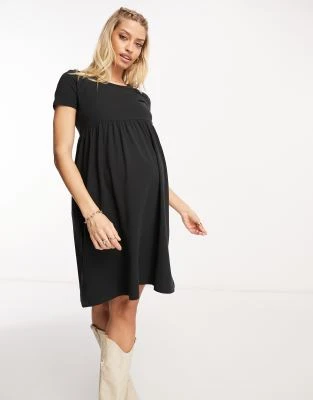 ASOS DESIGN – Vestito Milkmaid Midi Nero E Rosso A Fiori Con Dettagli Arricciati E Maniche Svasate