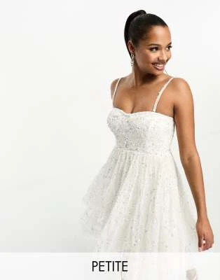 ASOS DESIGN Petite – Vestito Midi Da Ballo Di Fine Anno In Velluto Blu Navy Con Spalle Scoperte