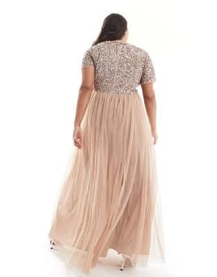 ASOS Edition Curve – Vestito Corto Con Decorazioni E Frange Con Perline Color Cipria