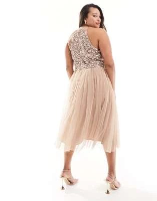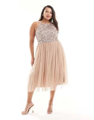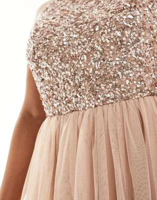 ASOS Edition Curve – Vestito Corto Con Decorazioni E Frange Con Perline Color Cipria