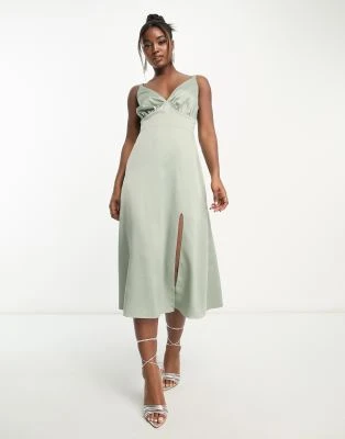 ASOS Maternity ASOS DESIGN Maternity – Vestito Midi Lilla Con Scollo Ad Anello E Maniche Con Volant