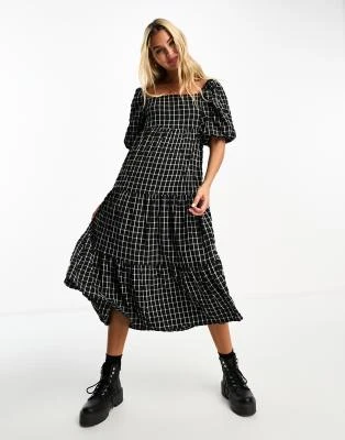 ASOS Maternity ASOS DESIGN Maternity – Vestito Midi Lilla Con Scollo Ad Anello E Maniche Con Volant