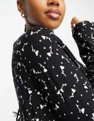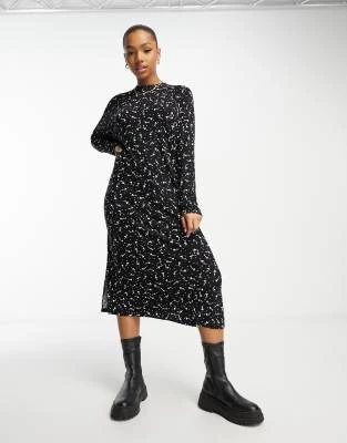 ASOS DESIGN – Vestito Milkmaid Midi Nero E Rosso A Fiori Con Dettagli Arricciati E Maniche Svasate