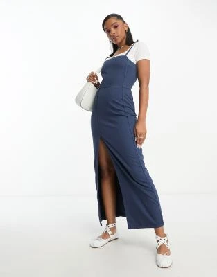 ASOS DESIGN – Vestito Milkmaid Midi Nero E Rosso A Fiori Con Dettagli Arricciati E Maniche Svasate
