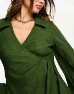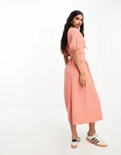 ASOS DESIGN – Vestito Midi Accollato Color Terracotta Incrociato Sul Davanti Con Spalline Imbottite